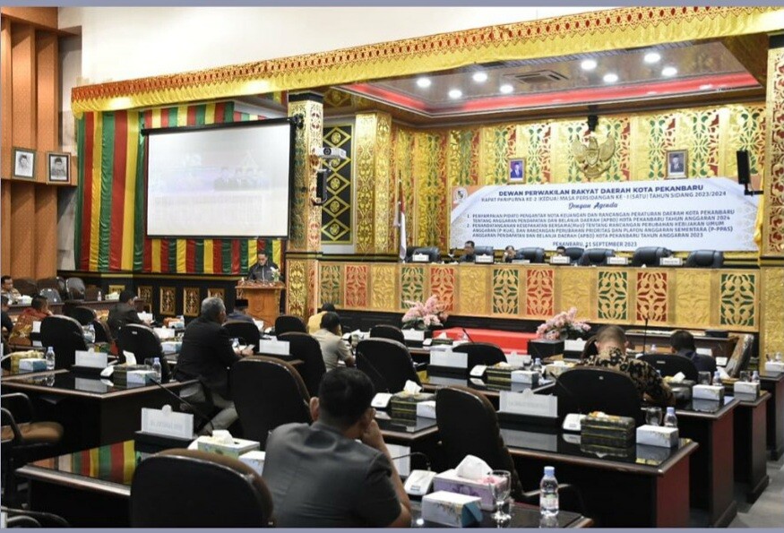 PEKANBARU - Pada Senin (12/07/2023) malam, DPRD Kota Pekanbaru menggelar rapat paripurna dengan agenda penyampaian pidato pengantar nota keuangan dan rancangan peraturan daerah kota pekanbaru tentang anggaran pendapatan dan belanja daerah (APBD) kota Pekanbaru tahun anggaran 2024.