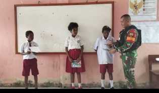 Satgas Yonif 132/BS TNI Mengajar Anak Sekolah di Perbatasan Papua