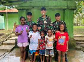 Prajurit Bima Sakti Ajarkan Pola Hidup Sehat Kepada Anak-Anak Papua