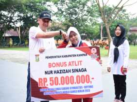 Puncak Peringatan Haornas Ke 41 Tahun 2024 , Pj Bupati Kampar Serahkan Bonus Rp 50 Juta Kepada Nur Azizah