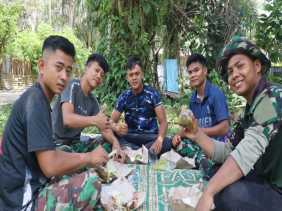 Kebersamaan dan Kekompakan Satgas TMMD dalam Momen Makan Siang Bersama